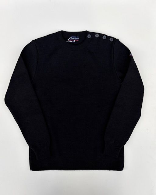Dumet solid crewneck sailor sweater, buttoned at the left shoulder, ribbed finish at the hem and cuffs.