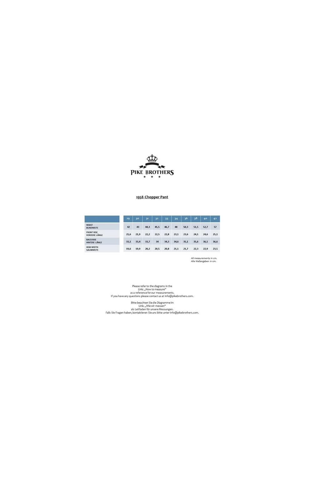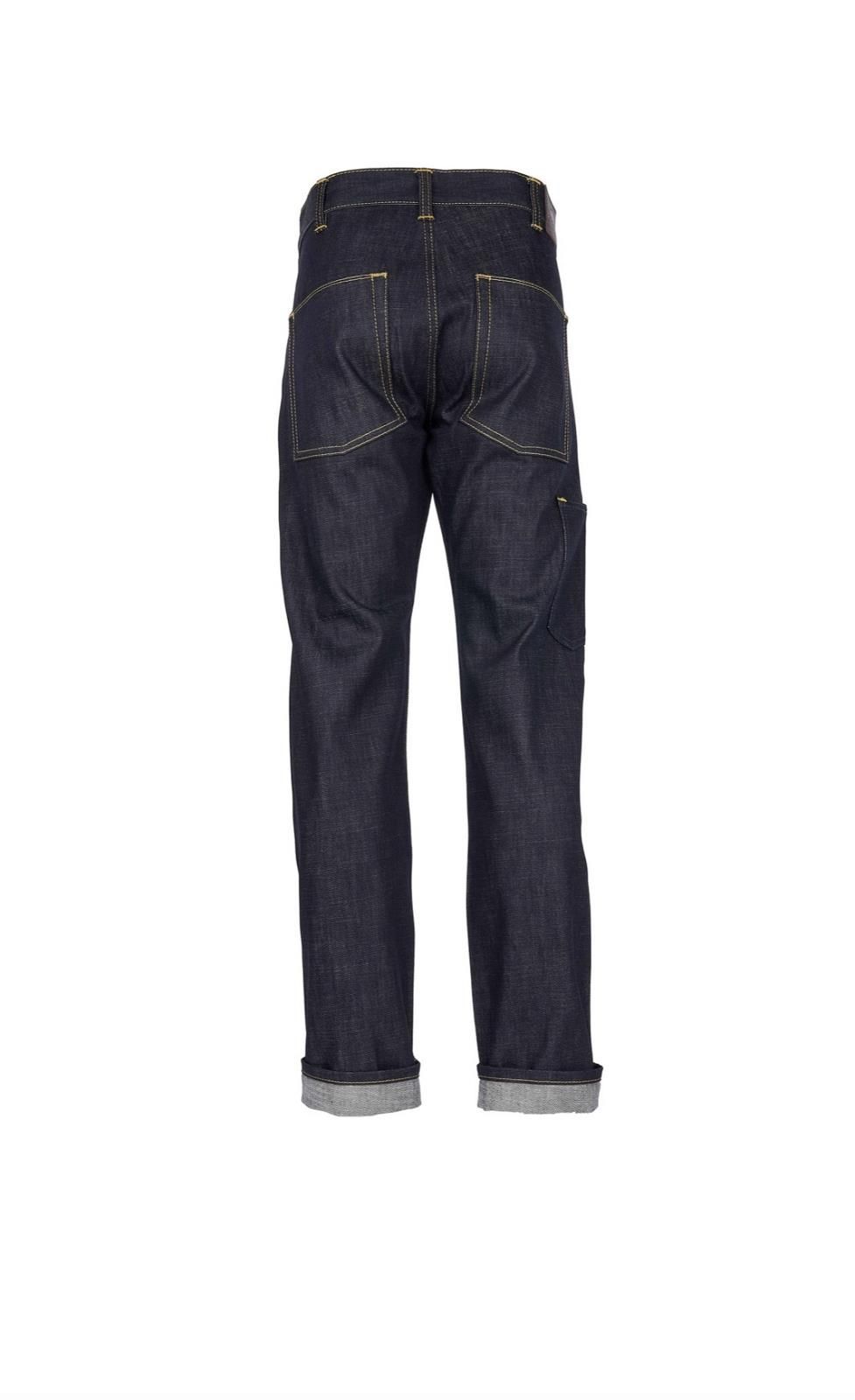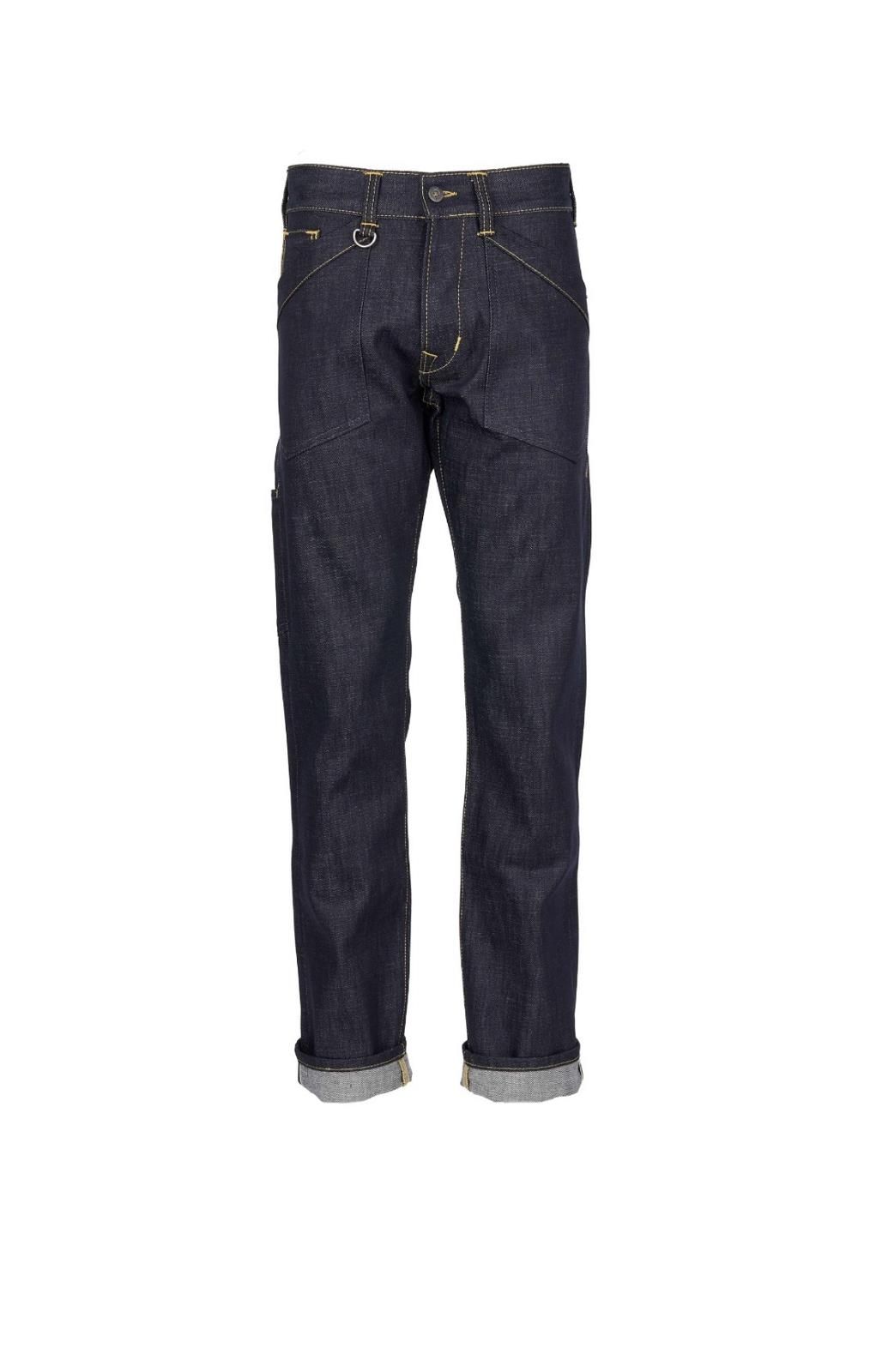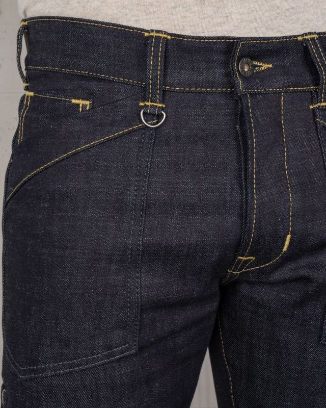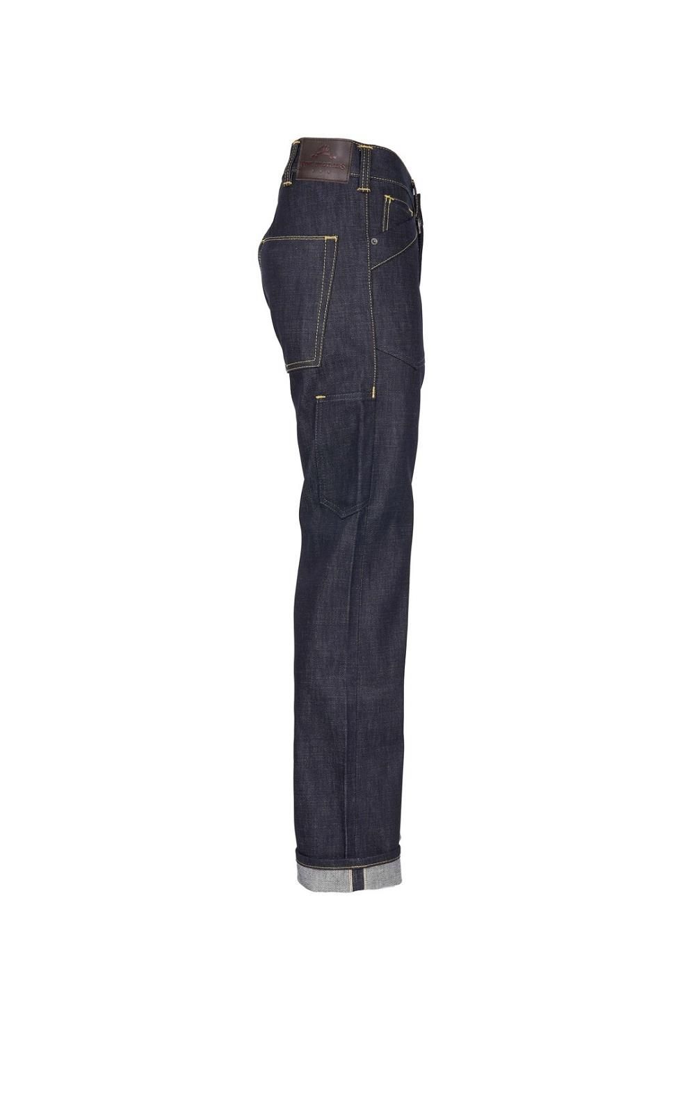 Based on a mid 1950s wood worker pant with patch pockets on the front. Our fine Pike Brothers details characterize these denims: - 15 ounce raw denim with selvage edge, 100% cotton - regular fit - heavy cotton thread in honey yellow color - heavy bar tacking on pockets, belt loops and seam ends - ruler pocket on right leg