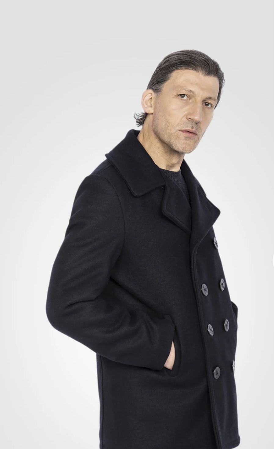 Made in the U.S.A. from melton wool, this iconic jacket is the classic version of the U.S. Navy's peacoat.